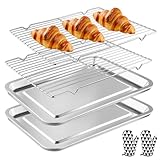 Ecofocet Backblech mit Abkühlgitter, Backblech Edelstahl, Antihaft Ofenblech mit 1 Paar Backhandschuhe, Kuchenblech Rechteckige, Backform Ofenblech Groß für Braten Backen Servieren, 40x30x2CM