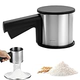 “Puderzuckerstreuer und Mehlsieb aus Edelstahl, Einhandbedienung, 250g Fassungsvermögen, Profi-Puderzuckermühle für Mehl, Zucker und Gewürze, Spülmaschinenfest”
