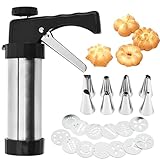 Dyaucwpo Edelstahl-Gebäckpresse, Gebäckspritze, Kekspresse mit 13 Schablonen und 8 Tüllen, Spritzgebäck Presse, Garnierspritze, Teigspritze, Keksmaschine, Backzubehör, Plätzchenpresse, Kekshersteller